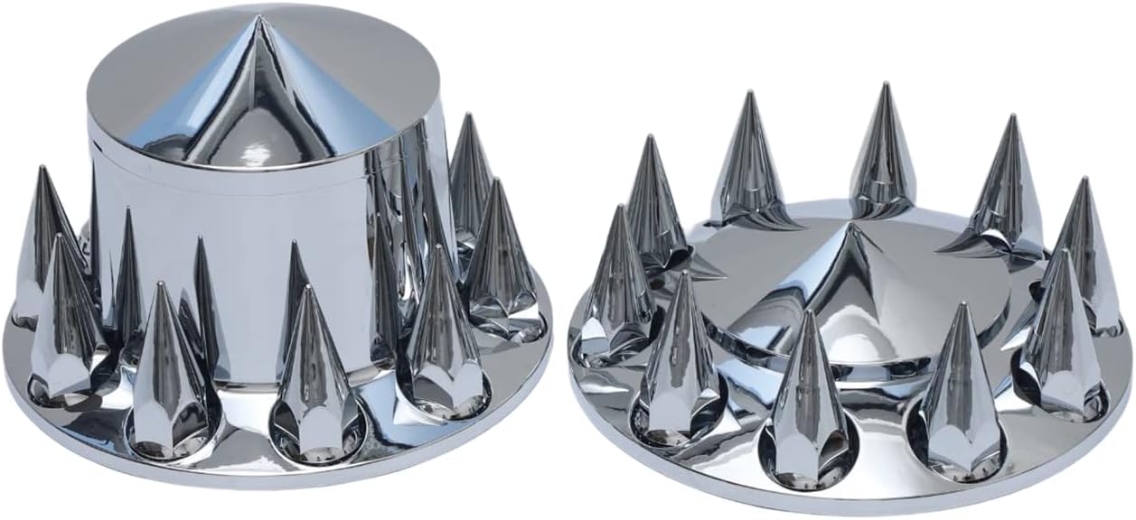 JIARU ABS Plastic Chromed Hubcaps Front and Rear Wheel Axle Cover Set with 33mm Thread-on Lug Nut Covers for Semi Trucks