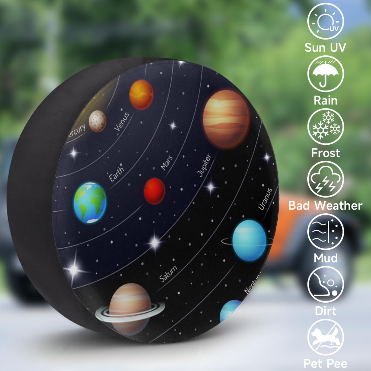Product size: 14 inches, 15 inches, 16 inches.About Printing:Digital printing technology, single side printing, not easy to fade.Product/Fabric Thickness:Polyester fabric; 1mm thickness.We understand the importance of convenience, which is why our tire cover is incredibly easy to clean. Simply wipe it with water or use a mild detergent for tougher stains, and it will be as good as new. No need for elaborate cleaning procedures or expensive maintenance products—our spare tire bag ensures hassle-free upkeep.The soft and smooth texture of tire covers for cars guarantees that your tires remain scratch-free and undamaged. The fabric's gentle touch prevents any abrasive contact with the tires' surface, preserving their longevity and overall condition. Drive with confidence, knowing that your tires are protected by a cover designed with care.We emphasize precision and quality in every aspect of our tire cover's construction. The reinforced stitching ensures durability and longevity, even when subjected to rigorous use. The neat and tight stitching guarantees that the tire cover holds its shape flawlessly, maintaining its aesthetic appeal.RV spare tire cover shields your tires and wheels from a wide range of potential damages. It effectively blocks harmful UV rays, preventing sun damage and premature aging of the tire rubber. The cover acts as a barrier against rain, dirt, dust, and other environmental factors, keeping your tires in optimal condition and extending their lifespan.If you have any questions about our trailer wheel covers, please contact us. We will reply to you and deal with your problem within 24 hours. Bring you the best shopping experience.
