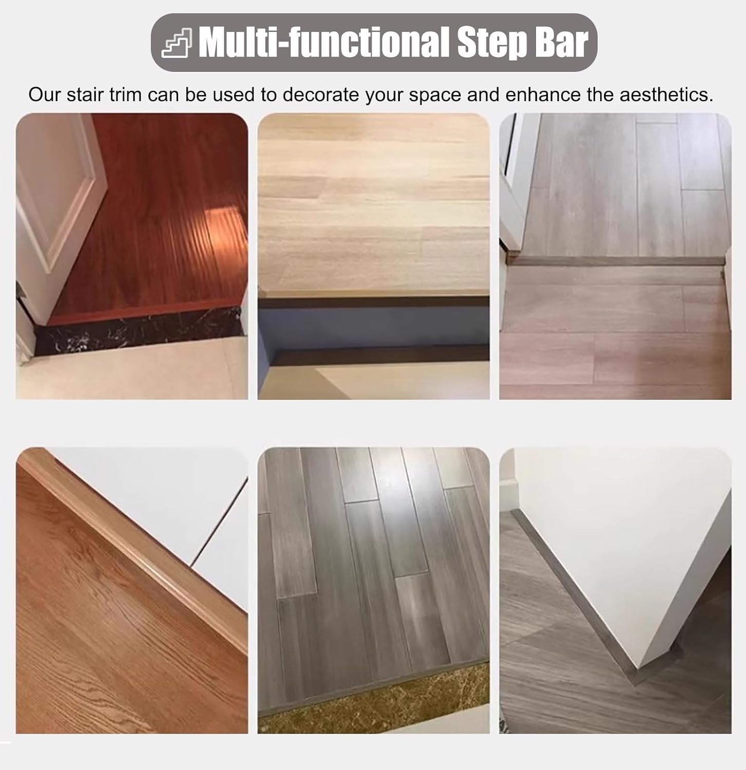 Floor Transition Strip Edge Strip Cover Trim Transition Bar Threshold Divider Strip rampStair edge nosing are the perfect solution for enhancing the and aesthetics of your staircase or porch.It provides non-slip ion for your family and is a safe guardian for every home.?Package Include :- 1 × Stair Nosing?Specifications:- Material: Aluminum Alloy - Width: 2 cm ( 3/4" )- Height: 0.7 cm ( 1/4" )- Length: 90 cm ( 35 3/8" )- Maximum load : 250kg ( 500 lbs )?Feature :- It is made of aluminium alloy which is strong and .- It can be used outdoors without colour fading.- It is with back non-slip design to avoid family members falling down- It can be used with any material of flooring.- The stair treads will not damage floors and can be used with confidence.- This stair nose ing is very easy to install.- Always keep the floor clean and dry before installation.