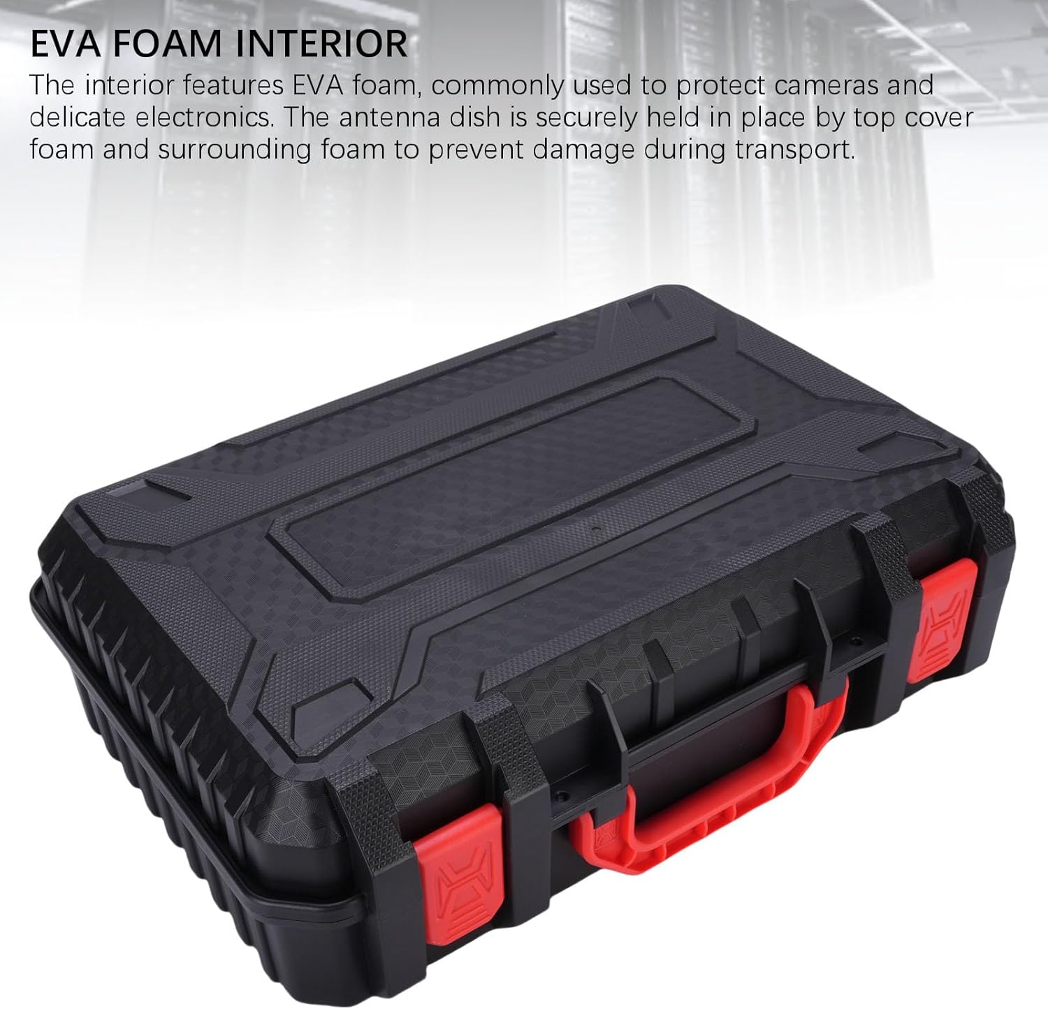 Spec: Item Type: Hard Satellite Case Material: ABS+EVA+Electronics Storage Box Color: Black + Red Digital Car Charger To DC Power Cord Length: 5m / 16.4ft Box Size: Approx. Length: 40.13cm / 15.8in Width: 34.04cm / 13.4in Height: 10.03cm / 3.95in How to Use: Open and use Package List: 1 x Hard Satellite Case 1 x Car Charger Power Cord 5m