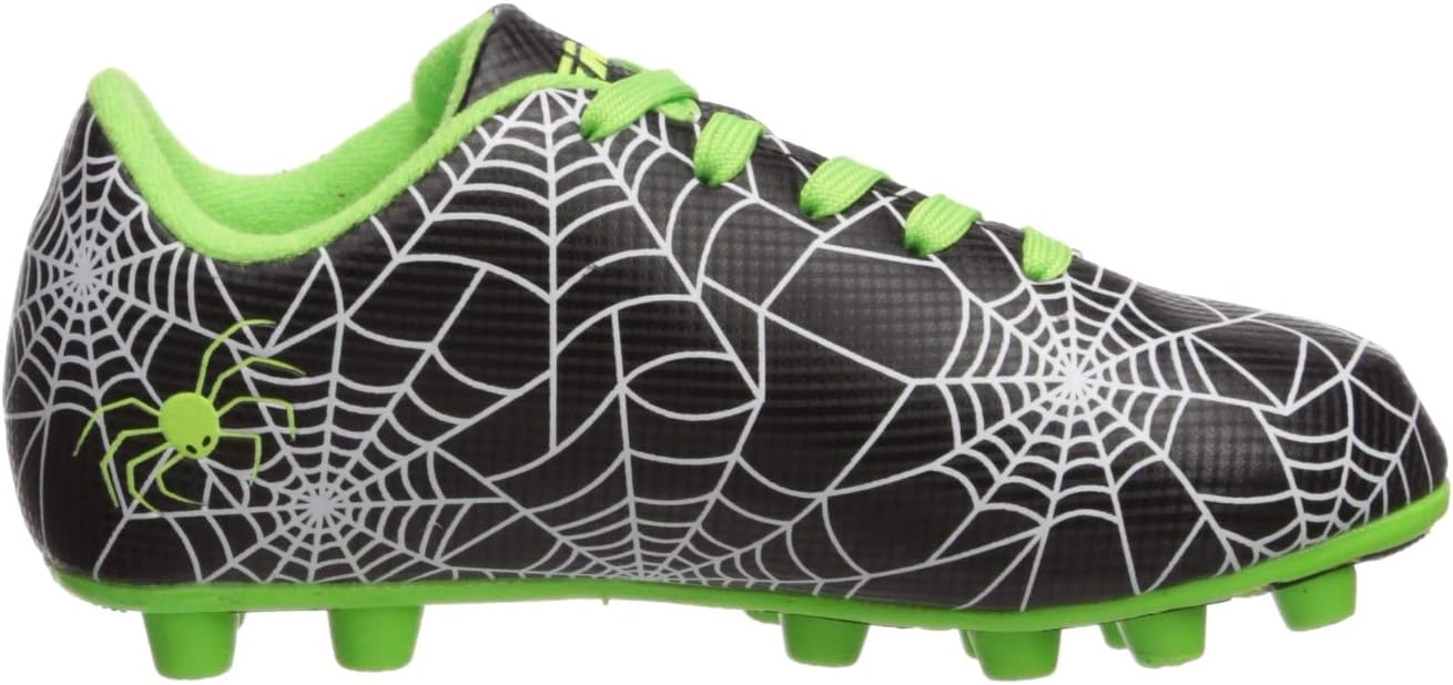 Elevate your game with the Spiderweb Firm Ground Soccer Cleats in Black/White/Green, combining style and comfort for peak performance. Engineered with a synthetic sole, these shoes deliver outstanding traction, enabling swift and agile moves on the field. Constructed from lightweight, sturdy, and durable materials, they ensure both comfort and longevity. The padded heel and collar lining provide additional cushioning and support, enhancing your playtime comfort. The renowned synthetic sole, known for its lightweight, strength, and durability, makes these soccer shoes versatile for various activities. The enduring design guarantees these shoes' durability for years. The upper, crafted from graphic synthetic material, and the two-color rubber outsole are securely stitched together, ensuring a reliable and long-lasting hold. The distinctive spiderweb-patterned cleats not only add a unique touch but also enhance visibility on the field, improving ball control and situational awareness for a strategic edge. The thoughtfully designed pattern offers maximum coverage, allowing you to move swiftly and confidently on the field.